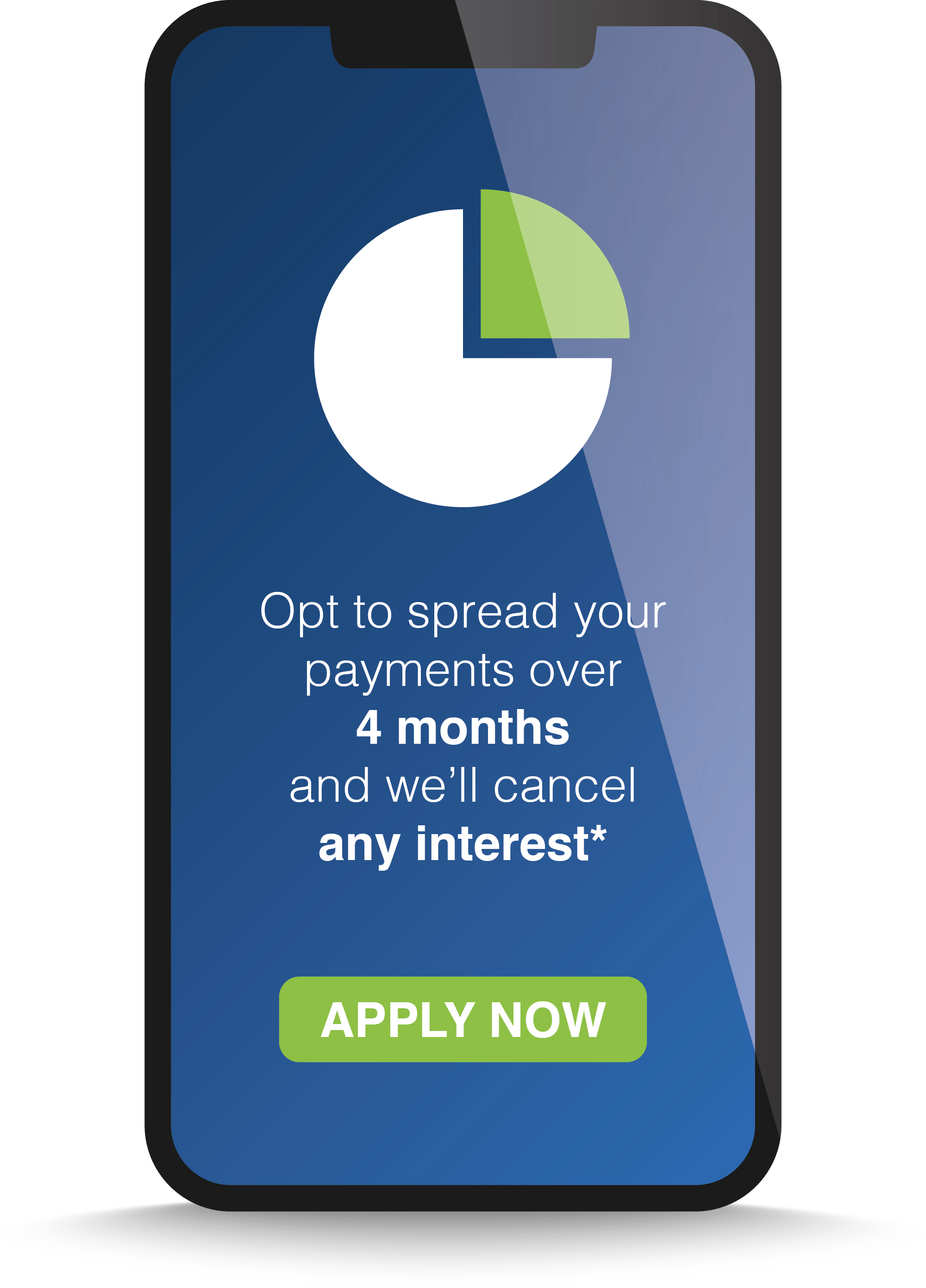 With our Pay in 4 feature, you can settle your loan in full within 4 and we'll cancel the interest*. We call this the "Pay in 4 period".
