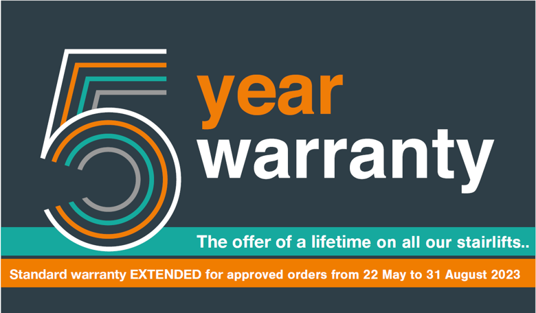 Our commitment to providing world-leading high-quality mobility aids to you our customers we believe in providing you with the best. So, we are thrilled to share some fantastic news to provide you with added confidence in our stairlifts. We’re extending the standard warranty from 2 to 5 years!*